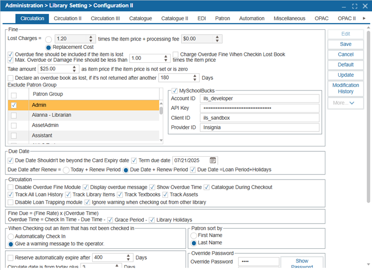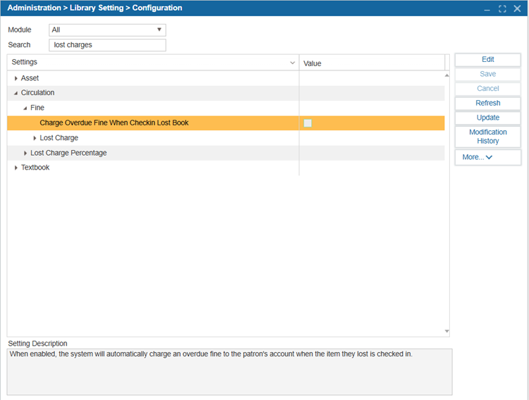 NOTE: Configuration setting changes are site-specific, meaning any modifications will apply only to the current site. However, configuration settings can also be cloned to other sites. This can be done by navigating to Administration > Library Setting > Clone Parameter > Configuration tab.