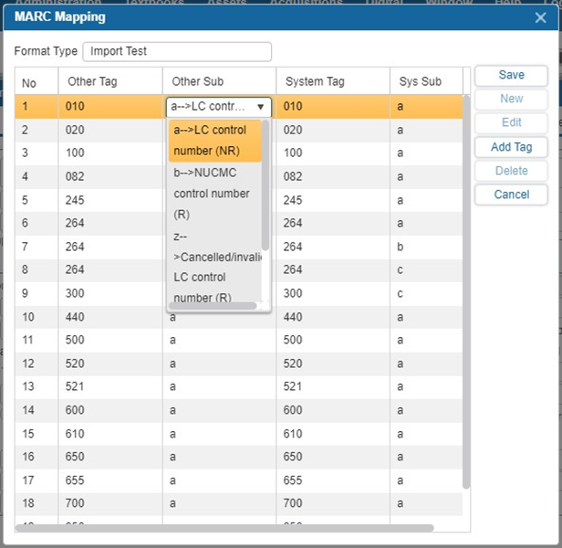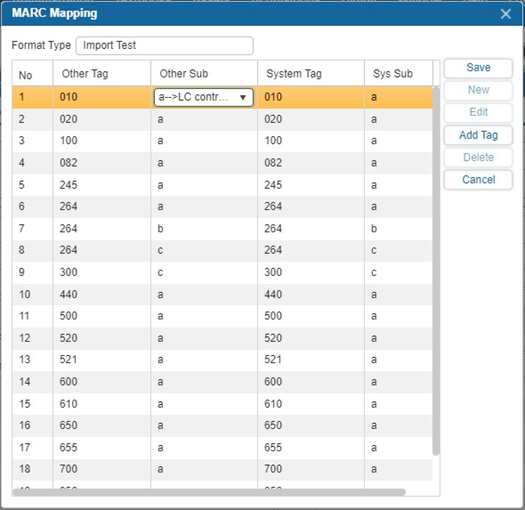 - The Other Tag and Other Sub will be replaced with System Tag and Sys Sub when the records are imported.