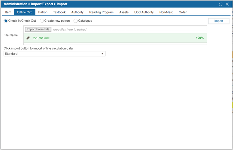 Non-MARC Import allows you to import bibliographic and item records that are not in the MARC format into the library management system.