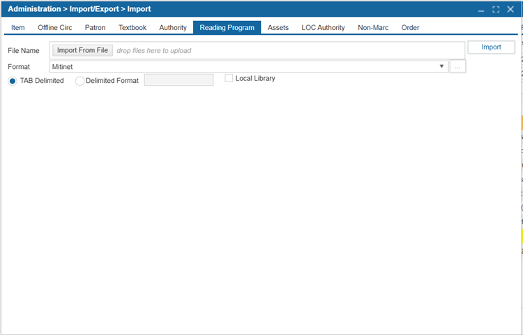 - Navigate to Administration > Import/Export > Import > Reading Program tab.