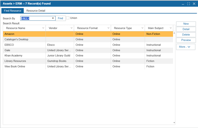 3. To view detailed information about a resource, either double-click a record or select the record and select the Resource Detail tab.