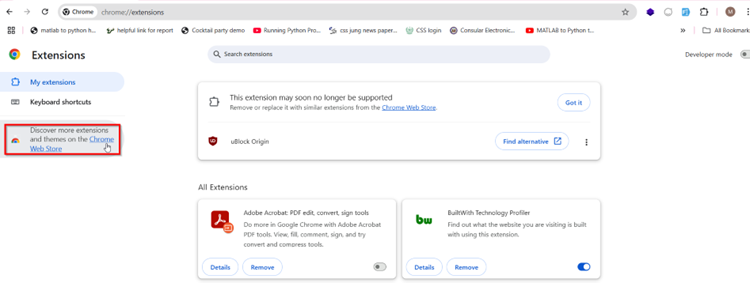 3. Scroll to the bottom of the page and click Chrome Web Store.
