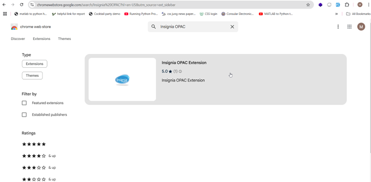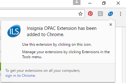 10. Close Google Chrome and reopen it to start using the Insignia OPAC extension.