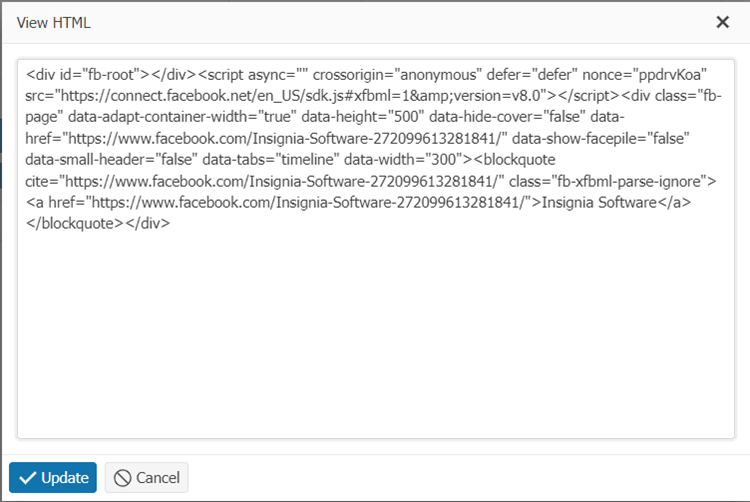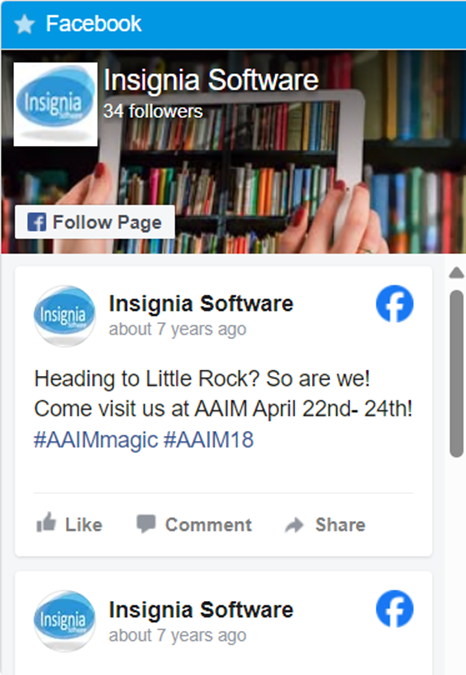 - Enter your Facebook page URL (e.g. https://www.facebook.com/InsigniaSoftwareInc).