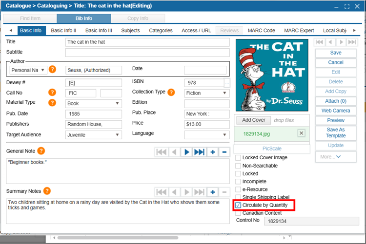 | Notes | It displays any notes that have been set up for the item under Administration > Library Setting > Circulation Types > Item Circ Type tab. |