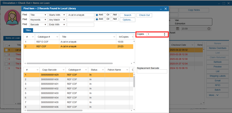 Note: The Custom Setting OnlyAssignAvailableCopyInItemToCheckout, which can be accessed when logged in as Admin All, controls whether copies with a status other than "In" can be assigned to bookings. When this setting is set to 1, the system will only assign available (In) copies to bookings, and as a result, Transfer Slips will not be generated. To enable the use of Transfer Slips, this setting must be set to 0.